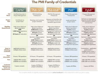 El Project Management Institute (PMI) es una organización fundada en 1969 para establecer estándares y certificaciones en gestión de proyectos. Ofrece varias credenciales para profesionales de proyectos y promueve los principios de gestión de proyectos a través de eventos educativos. El capítulo de PMI en Colombia busca difundir las mejores prácticas de gestión de proyectos en la región y apoyar a los miembros en su certificación y desarrollo profesional continuo.