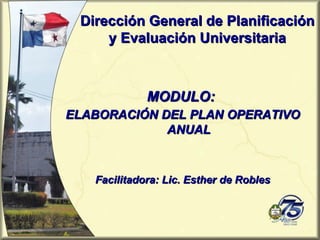 Este documento presenta información sobre la elaboración del Plan Operativo Anual (POA) en la Universidad de Panamá. Explica que el POA es un instrumento de planificación y gestión a corto plazo que vincula las políticas y estrategias con las actividades programadas. También identifica algunas deficiencias comunes en la elaboración del POA y propone aspectos a mejorar como priorizar proyectos con recursos disponibles y que generen mayor impacto.