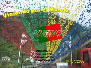 El documento proporciona información sobre Portugal, incluyendo su ubicación en Europa, clima, flora y fauna, sistema de gobierno, fuerzas armadas, subdivisiones administrativas, religión, gastronomía, deportes principales, ciencia y tecnología, y los destinos turísticos más populares como el Algarve, Lisboa y Oporto.