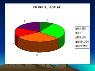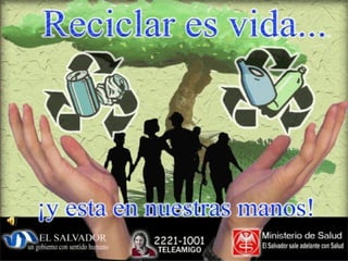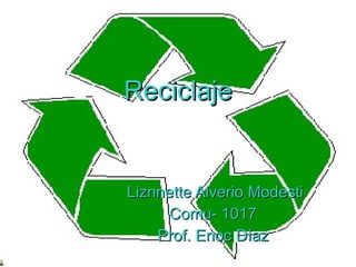 Este documento trata sobre el tema del reciclaje. Explica que el reciclaje es un proceso para recuperar materiales descartados y reutilizarlos en nuevos productos. Menciona algunas ventajas del reciclaje como el ahorro de energía y recursos, y la reducción de contaminación. También describe diferentes métodos de separación de materiales reciclables como en la fuente, manual y mecánica. Finalmente, enfatiza la importancia de reciclar para conservar el medio ambiente.