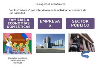 El documento aborda el papel de los agentes económicos en la actividad económica, destacando las funciones de familias, empresas y el sector público. También se menciona el flujo circular de la renta y se presenta una crítica al sistema de planificación centralizada en Cuba a través de un documental sobre la realidad de los ciudadanos cubanos. Por último, se discute una estadística preocupante sobre el desconocimiento del gasto en 9 de cada 10 hogares.