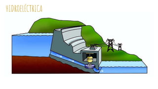 España genera energía eléctrica principalmente de fuentes hidroeléctrica, térmica y solar. La hidroeléctrica utiliza la fuerza del agua para mover turbinas y generar electricidad, mientras que las plantas térmicas queman combustibles fósiles. La energía solar se aprovecha a través de paneles solares para producir electricidad.