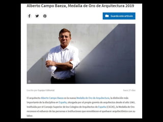 Este documento presenta cuatro viviendas diseñadas por Alberto Campo Baeza en la última década. Describe brevemente cada vivienda, incluyendo su ubicación y años de construcción. También incluye una cita de Campo Baeza sobre los orígenes de la arquitectura y una reflexión sobre el análisis arquitectónico.