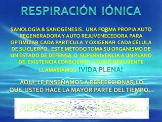 El documento describe la importancia de diversos elementos, como el hidrógeno, oxígeno y sales minerales, en el funcionamiento celular y su relación con la salud y el bienestar humano. Resalta que la mente y las creencias del individuo influyen en su salud, y sugiere que la respiración adecuada puede ser clave para la sanación y rejuvenecimiento. Además, menciona el uso del método Buteyko en el deporte y su impacto en el rendimiento atlético.