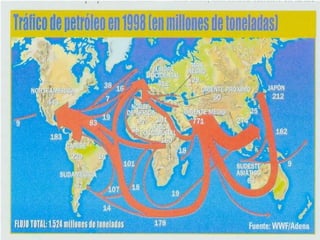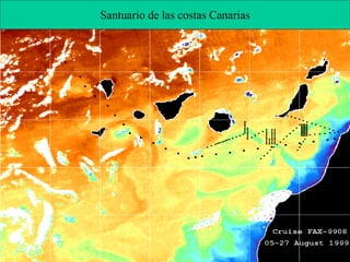 El documento proporciona información sobre las prospecciones petrolíferas de Repsol en Canarias. Explica que Repsol planea realizar sísmicas y perforar un pozo exploratorio en los próximos años para determinar si existen reservas de petróleo y gas. Sin embargo, existen preocupaciones sobre los posibles impactos ambientales y sociales de estas actividades en el santuario de ballenas de Canarias.