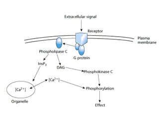 El documento describe los factores de crecimiento plaquetarios y su papel en la regulación del crecimiento celular. Los factores de crecimiento son señales proteicas que regulan funciones como el crecimiento, proliferación y supervivencia celular. Se liberan de las plaquetas y activan vías de señalización intracelular que conducen a la expresión génica involucrada en la regeneración tisular. La terapia con plasma rico en plaquetas utiliza estos factores de crecimiento para promover la cicatrización de tejidos.