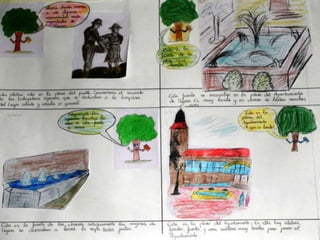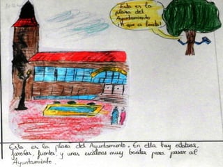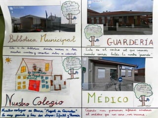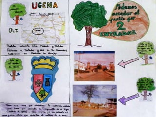 El documento presenta un recorrido por el pueblo de Ugena, comenzando con una visita a la Biblioteca municipal y luego mostrando algunos de los monumentos más importantes de la localidad.