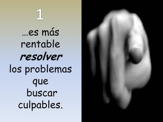 El documento presenta varias citas y reflexiones sobre la mejora continua y la resolución de problemas en lugar de buscar culpables. También enfatiza la importancia de mejorar los procesos y las relaciones entre áreas y personas para lograr una transformación sostenible. Además, sugiere que el aprendizaje más efectivo proviene de la acción y la conversación, y que se necesita que los empleados estén contentos para que los clientes también lo estén.
