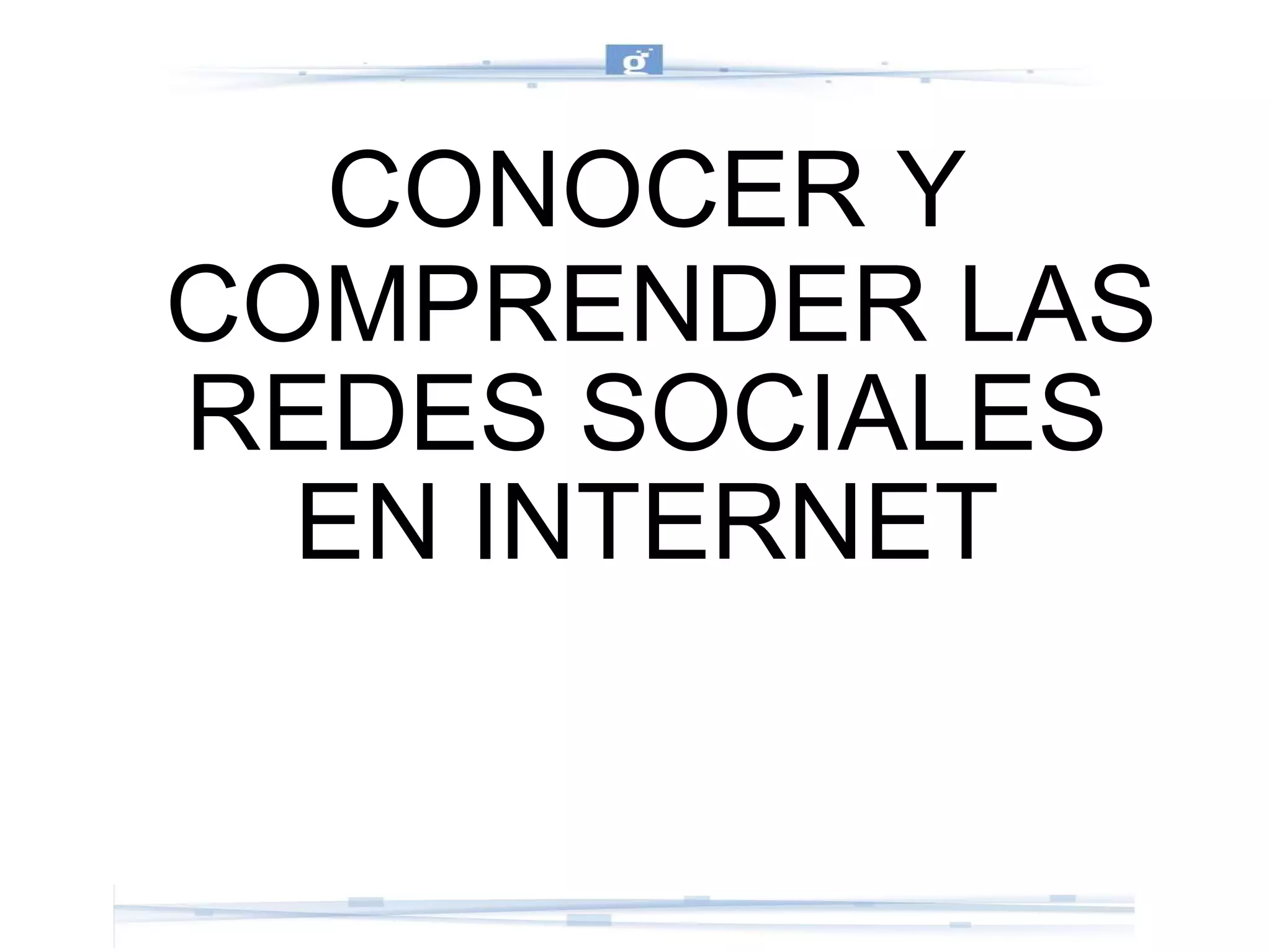 El documento describe las redes sociales, sus ventajas y desventajas. Menciona que las redes sociales permiten la comunicación y el intercambio de información entre personas, pero también plantean riesgos como la pérdida de privacidad, robo de identidad, contactos sexuales no deseados y adicción. El documento enfatiza la importancia de proteger los datos personales y usar las redes sociales de manera segura.