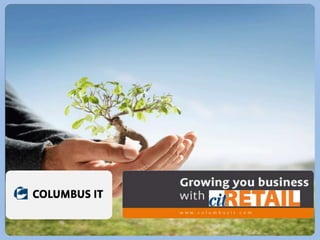 Columbus IT es un proveedor global de soluciones de software con más de 1,100 empleados en 27 países. El documento proporciona información sobre las capacidades y soluciones de Columbus IT para maximizar la productividad de los clientes a través de la optimización de procesos de negocio. Se describen soluciones como ERP, BI, CRM y desarrollo de software, así como casos de éxito de clientes como Ayuntamiento de Barcelona y cadenas minoristas.