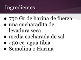 Este documento proporciona instrucciones para hacer pan casero en 7 pasos: 1) mezclar los ingredientes y amasar la masa, 2) amasar y refinar la masa, 3) dejar fermentar la masa por 1-1.5 horas, 4) amasar de nuevo la masa, 5) dejar fermentar la masa por 50 minutos, 6) hornear el pan a 230°C durante 20 minutos y luego a 200°C por 15-20 minutos más, y 7) enfriar el pan completamente antes de cortarlo.