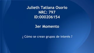 El documento explica los 5 pasos para crear un grupo de contactos en el correo institucional: 1) dar click en contactos y luego en Grupo Nuevo, 2) darle un nombre al grupo, 3) verificas que se creó el grupo, 4) agregar contactos de la bandeja más contactados aplicándolos al grupo, 5) ver los contactos agregados al grupo y compartir documentos masivamente.