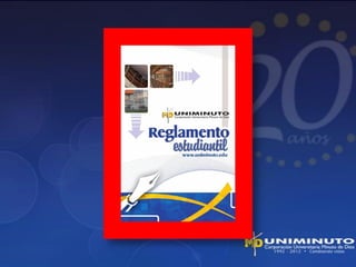 El documento presenta la información sobre el reglamento estudiantil de la Universidad Minuto de Dios. En 3 oraciones o menos, resume lo siguiente: