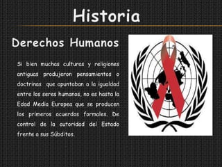 Se trata de un documento que describe los derechos humanos de las personas que viven con VIH/Sida. Explica que los derechos humanos son inherentes a toda persona y significan una garantía de protección ante el poder del Estado. También describe las obligaciones generales de los Estados como respetar, proteger y garantizar los derechos humanos de todas las personas, incluidas las que viven con VIH/Sida.
