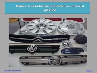 El documento describe los diferentes tipos de plásticos, incluyendo termoplásticos y termofijos, y sus procesos de manufactura como inyección y extrusión. Explica que los termoplásticos se ablandan con calor y se endurecen con enfriamiento, mientras que los termofijos se endurecen permanentemente con calor debido a una reacción química. También describe las partes y procesos básicos de las máquinas de inyección y extrusión de plásticos.