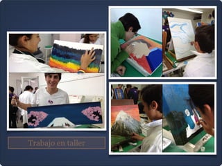 Este documento presenta los trabajos de los estudiantes de la generación 3o secundaria 2012-2013 en la técnica del óleo. Los estudiantes exploraron temas como el amor y la muerte basándose en la novela "Un grito de amor desde el centro de la tierra". El documento enumera los nombres de los estudiantes y muestra ejemplos de sus trabajos, incluyendo pinturas inspiradas en el cubismo y paisajes nocturnos.