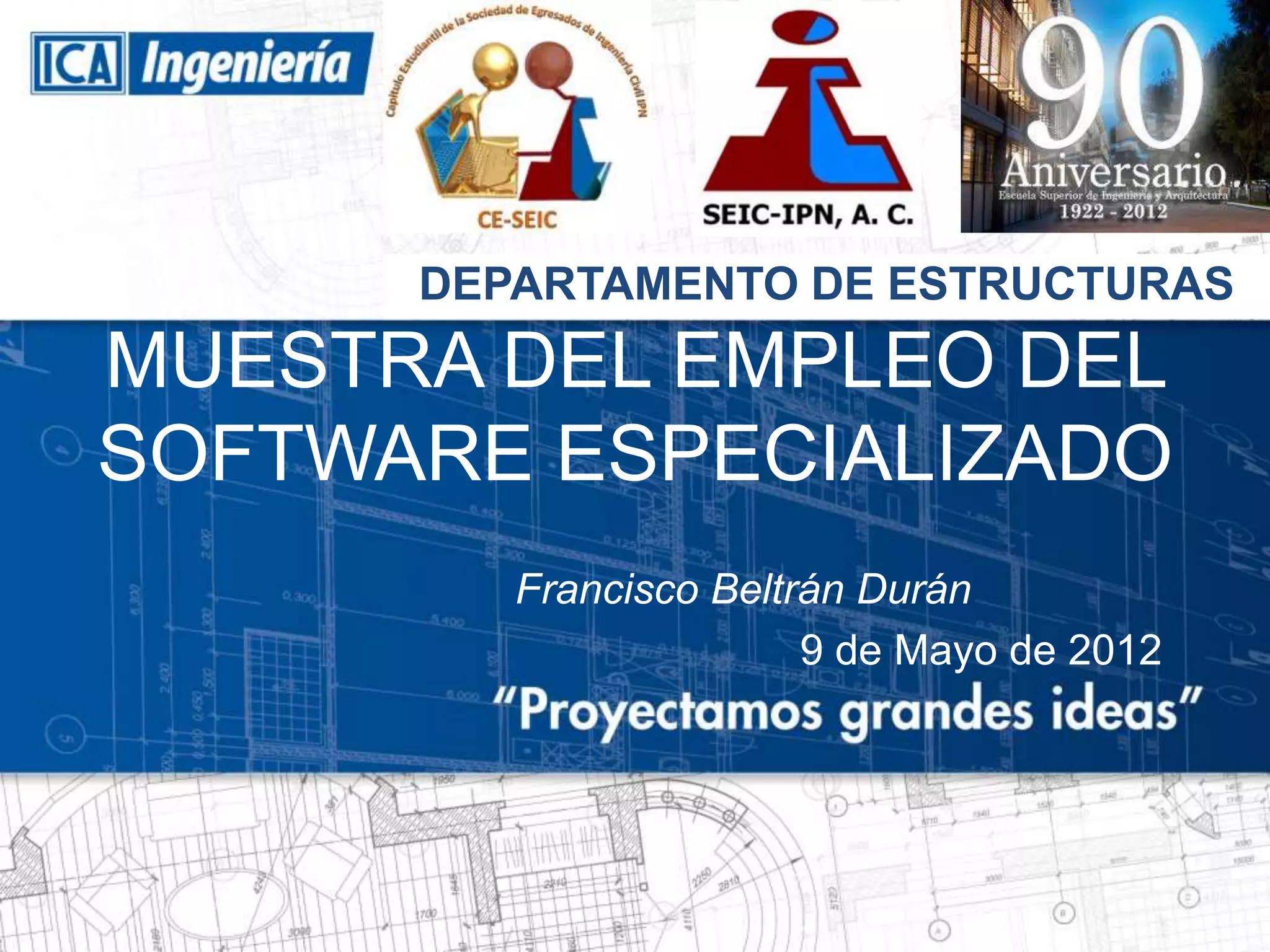 Este documento presenta una introducción al uso de varios programas de software especializado para el análisis estructural, incluyendo SAP 2000, ETABS, ECOgcW, STAAD-PRO, MIDAS, PLAXIS y Mathcad. Explica brevemente los requisitos técnicos, capacidades y ejemplos de modelos creados con cada programa. Concluye enfatizando la importancia de probar cuidadosamente cualquier función desconocida y que ningún programa sustituye el juicio del ingeniero.