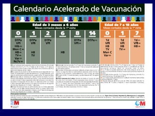 Este documento proporciona información sobre diferentes vacunas, incluyendo su clasificación, características y calendarios de vacunación. Se describen vacunas vivas atenuadas, inactivadas, bacterianas y virales, así como pautas de corrección de calendarios de vacunación para diferentes grupos de edad. También incluye recomendaciones sobre el uso de paracetamol y el intervalo entre vacunas.