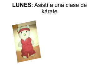 Elisa Sánchez Vicente asistió a clases de kárate el lunes, un espectáculo de baile el martes, nadó el miércoles, jugó al tenis el jueves pero perdió, visitó ruinas romanas el viernes, tuvo un día tranquilo en casa el sábado viendo una película y fotos del verano, y asistió a una carrera de motociclismo el domingo donde participaban amigos.