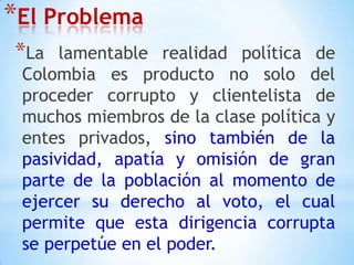 El proyecto 'Voto Racional' busca fomentar una cultura de votación consciente en Colombia, abordando la corrupción y la apatía electoral. A través de análisis detallados de propuestas políticas, se pretende involucrar especialmente a la población joven para que comprendan la importancia de un voto informado. El objetivo es transformar la percepción del ejercicio del voto, independientemente de los actores políticos actuales.