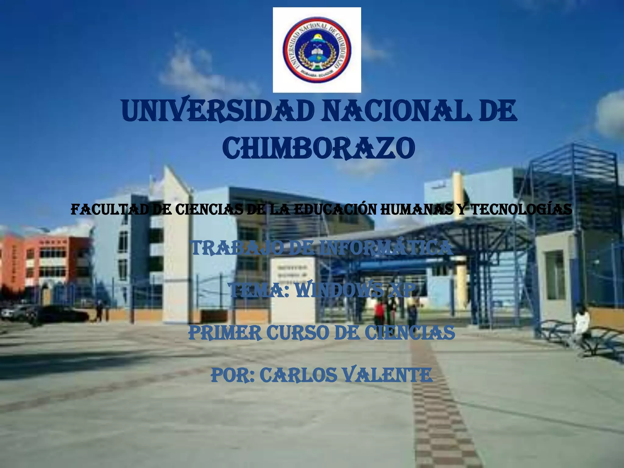 Windows XP es un sistema operativo que evolucionó a partir de versiones anteriores como Windows 286, 486 y 586. El documento describe brevemente la historia de los computadores desde las primeras máquinas mecánicas hasta las generaciones actuales, y explica que Windows XP es una versión más avanzada. También clasifica los diferentes tipos de computadoras como macro, mini, micro y nano, y explica que los periféricos permiten la comunicación entre el hombre, las máquinas y entre las máquinas.