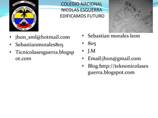 El documento presenta información de contacto de Sebastian Morales Leon, incluyendo su nombre, número, iniciales, correo electrónico y blog.
