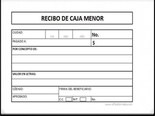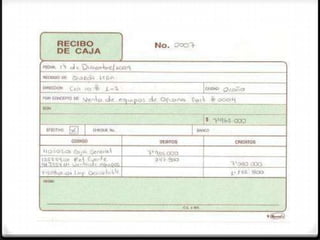La contabilidad es la técnica que se encarga de estudiar, medir y analizar la situación económica y financiera de una empresa para facilitar la toma de decisiones. Los comprobantes de contabilidad son documentos que sirven de base para registrar las operaciones comerciales de una empresa y deben soportar cada registro en el libro de contabilidad. Algunos de los principales comprobantes son los recibos de caja, facturas, cheques, recibos de caja menor, notas de crédito, notas de débito y comprobantes diarios de cont