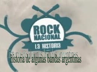 El documento presenta resúmenes breves de la historia de varias bandas de rock argentinas importantes como Los Redondos, Sumo, Soda Stereo, Charly García, La Renga, Viejas Locas, Los Piojos y Bersuit Vergarabat. Describe su formación, estilo musical, éxitos y evolución.