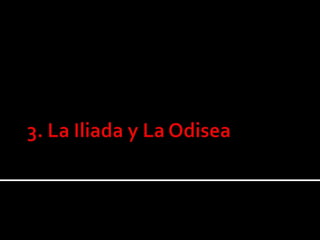 La Ilíada y La Odisea son los dos poemas épicos atribuidos al poeta griego Homero. La Ilíada se centra en la ira de Aquiles y la muerte de Héctor durante la guerra de Troya, mientras que La Odisea narra el largo viaje de regreso a casa de Odiseo tras la guerra, enfrentándose a numerosas dificultades y obstáculos. Ambas obras describen la sociedad heroica de la época micénica y han influenciado profundamente la cultura occidental.