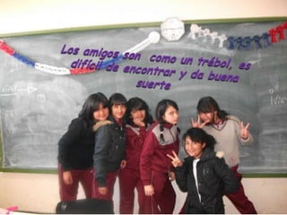 Este documento resume los recuerdos y sentimientos de un grupo de amigos al finalizar el año escolar. Resalta los momentos felices y las amistades que surgieron durante el curso, así como la tristeza de tener que despedirse al terminar el año. El autor expresa su deseo de que el grupo continúe unido a pesar de la separación y que atesoren para siempre los recuerdos creados durante su tiempo juntos.