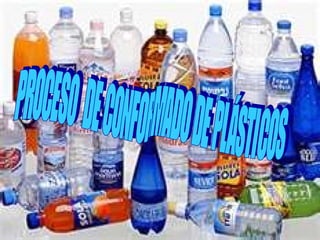 El documento describe diferentes procesos de conformado de plásticos como prensado, extrusión, inyección, soplado y laminación por calandrado. Explica brevemente cómo funciona cada proceso y menciona algunas ventajas y desventajas de los plásticos como su resistencia, bajo costo y versatilidad, pero también su contaminación y dificultad para reciclar.