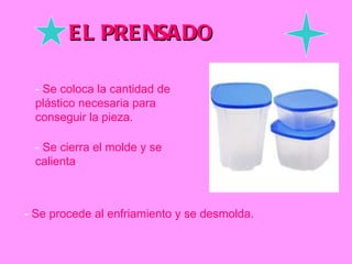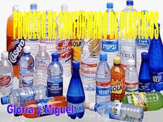 El documento describe diferentes procesos de conformado de plásticos como el prensado, la extrusión, la inyección, el soplado y la laminación. Explica brevemente los pasos de cada proceso y concluye mencionando algunas ventajas y desventajas de los plásticos.