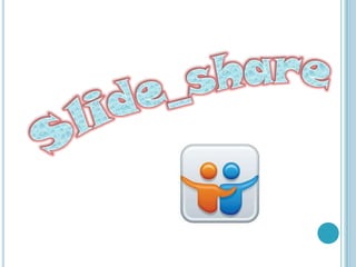 Este documento proporciona información sobre SlideShare, un sitio web que permite a los usuarios subir y compartir presentaciones de diapositivas de forma gratuita. Los usuarios pueden crear cuentas usando su cuenta de Facebook o registrándose directamente. SlideShare es similar a YouTube pero está orientado a presentaciones. Los usuarios pueden subir archivos en formatos como PowerPoint, Word y PDF.