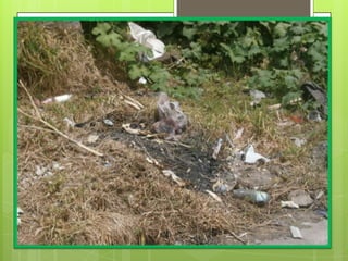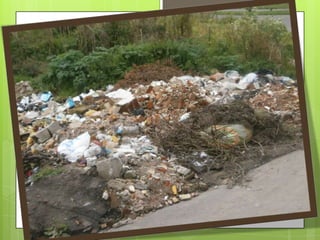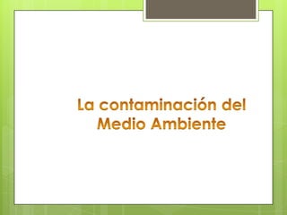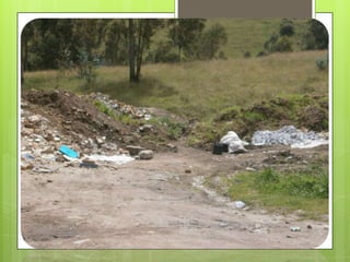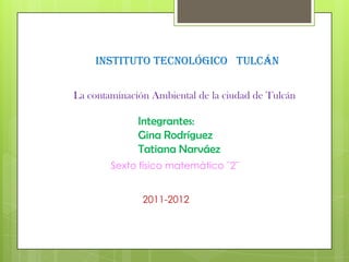 El documento describe la contaminación ambiental en la ciudad de Tulcán, Ecuador. Explica que los principales causantes de la contaminación son los seres humanos y sus actividades como botar basura en las calles y ríos. También identifica varios tipos de contaminación como la atmosférica, hídrica, del suelo, acústica y más. Finalmente, ofrece recomendaciones para reducir la contaminación como clasificar la basura y no contaminar los ríos.