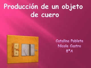 El documento proporciona instrucciones para hacer una billetera de cuero en 3 pasos. Primero, cortar las piezas de cuero y genero al tamaño deseado. Segundo, superponer las piezas y sujetarlas con alfileres. Tercero, coser cuidadosamente las partes para completar la billetera. Sobrarán materiales como cuero y genero que pueden usarse para hacer un monedero.