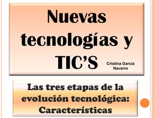 El documento describe las tres etapas de la evolución tecnológica: 1) la era fordista desde 1910-1960 caracterizada por la producción en cadena y el aumento del consumo, 2) la era del toyotismo desde 1970-1990 definida por la investigación e innovación de productos, y 3) la era de la sociedad de la información desde 1990 hasta hoy caracterizada por el uso de la información a través de computadoras y redes sociales.
