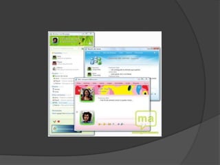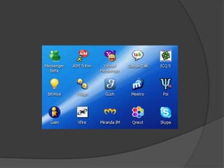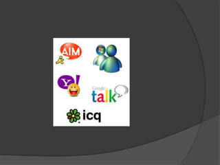 Este documento presenta información sobre blogs, webquests, chats en línea, modificaciones del lenguaje informático y mensajería instantánea. Explica que un blog es un sitio web actualizado periódicamente por uno o más autores sobre una temática, y que una webquest es una herramienta de aprendizaje guiado que utiliza recursos de internet. También describe diferentes formas de modificar el lenguaje a través de abreviaciones, mayúsculas, números y símbolos, y define la mensajería instantánea como una forma de comunicación en