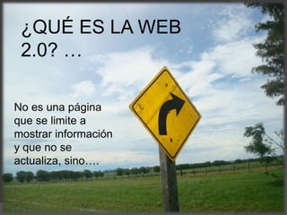 El documento describe las características de la Web 2.0, incluyendo que permite a los usuarios generar y compartir contenido, interactuar entre sí, y disfrutar de videos, sonidos e imágenes. Algunas características clave son que es una plataforma funcional, ligera, simple, flexible, social y participativa. También discute cómo la Web 2.0 podría transformar la educación tradicional al proporcionar acceso a una gran cantidad de recursos y herramientas, y favorecer el aprendizaje formal e informal.