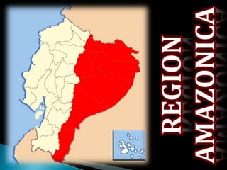 El documento presenta una breve descripción de las cuatro regiones geográficas de Ecuador - la Costa, la Sierra, la Región Amazónica y la región Insular. Resalta algunos atractivos turísticos de la región de la Costa como Atacames, Súa, Tonsupa, y reservas ecológicas. También menciona brevemente la importancia del Monumento del Ecuador y describe las características generales de la Amazonía ecuatoriana y la construcción de un teleférico en Puyo.
