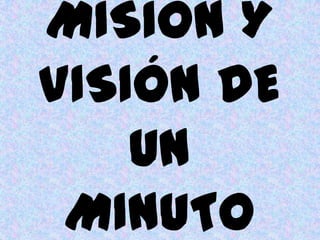 El documento presenta la misión, visión y bibliografía de la Universidad Minuto de Colombia. Su misión es ofrecer educación superior de calidad con acceso flexible para formar profesionales competentes y líderes de transformación social. Su visión para 2012 es ser reconocida por sus programas académicos de alta calidad, su impacto en la cobertura educativa y sus relaciones nacionales e internacionales.