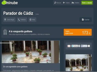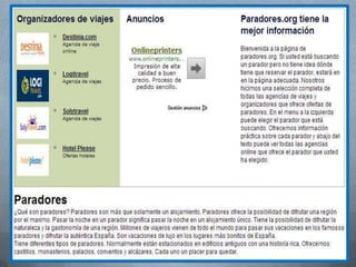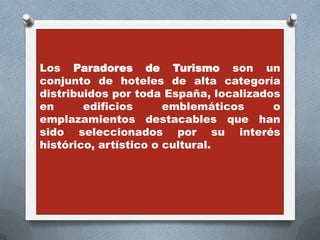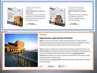 Los Paradores de Turismo son una red de hoteles de alta categoría ubicados en edificios históricos o lugares destacables de España. Sus principales canales de distribución son su central de reservas, agencias de viajes, touroperadores, y reservas directas de clientes a través de internet o teléfono. Recientemente han empaquetado experiencias turísticas de Paradores para su distribución a través de grupos hoteleros como Barceló.