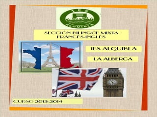 Este documento proporciona información de contacto para el IES Alquibla, incluyendo su dirección, número de teléfono, fax, sitio web y correo electrónico. Se recomienda contactar a la coordinadora de la sección bilingüe Francisca Castillo Gómez o a cualquier miembro del equipo directivo para obtener más información.