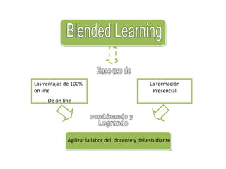 El documento compara las ventajas de la formación 100% en línea frente a la formación presencial, señalando que la formación en línea puede agilizar el trabajo tanto del docente como del estudiante al eliminar las limitaciones de tiempo y espacio propias de la enseñanza presencial.