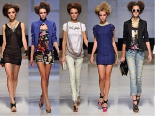 Este documento resume los principales conceptos relacionados con el cuerpo, la vestimenta y la moda a lo largo de la historia y en la actualidad. Explica cómo la percepción del cuerpo ideal ha cambiado, de valorar la corpulencia a favorecer la delgadez. También describe las diferencias en la vestimenta según épocas, clases sociales y género, así como fenómenos de moda como el vaquero, el burka o las tribus urbanas. Finalmente, señala el papel de la industria y el marketing en