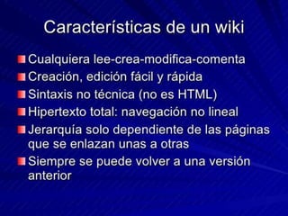 Una de las herramientas de la web 2.0 la wiki y sus funcionalidades