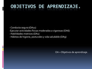 Este documento presenta la planificación de una clase de Educación Física para estudiantes de 2o básico. Los objetivos de aprendizaje se enfocan en desarrollar habilidades motrices, conductas seguras y hábitos saludables. La clase consiste en diversos juegos y circuitos que involucran desplazamientos como gatear, saltar y correr, con énfasis en la hidratación. El cierre incluye estiramientos guiados y analizar los objetivos de la sesión.
