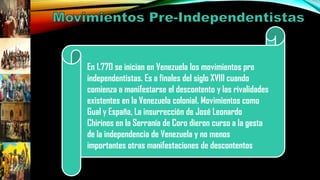 La insurrección de José Leonardo Chirinos en 1795 en las serranías de Coro, Venezuela, fue el primer intento independentista del país. Chirinos, un líder afrodescendiente, buscaba abolir la esclavitud, establecer una república democrática y eliminar impuestos como las alcabalas. Aunque la rebelión fracasó y Chirinos fue ejecutado, marcó el inicio del movimiento por la independencia de Venezuela del dominio español.