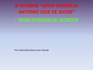 Este documento describe los 8 pisos ecológicos de Perú y algunos animales y plantas que se encuentran en peligro de extinción en cada región. Menciona que el colibrí andino se reproduce de forma delicada y su hábitat en la sierra peruana se ve afectado por cambios climáticos impredecibles. También señala que el crecimiento de la población humana está obligando al gato andino a retirarse cada vez más de las zonas pobladas de los Andes. Además, describe que el armadillo se adapta