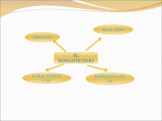 El documento habla sobre el romanticismo como movimiento artístico que influyó la literatura, música y pintura en el siglo XIX. Se desarrolló principalmente en la primera mitad del siglo XIX extendiéndose de Inglaterra a otros países europeos y América. Entre los representantes más importantes se encuentran Goethe, Lord Byron, Alejandro Dumas y Víctor Hugo. El romanticismo rechazaba el neoclasicismo y se enfocaba en los sentimientos individuales, lo misterioso y la evasión del mundo. El documento también