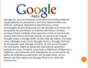 Google Maps y Google Earth, el sitio web de vídeos YouTube,